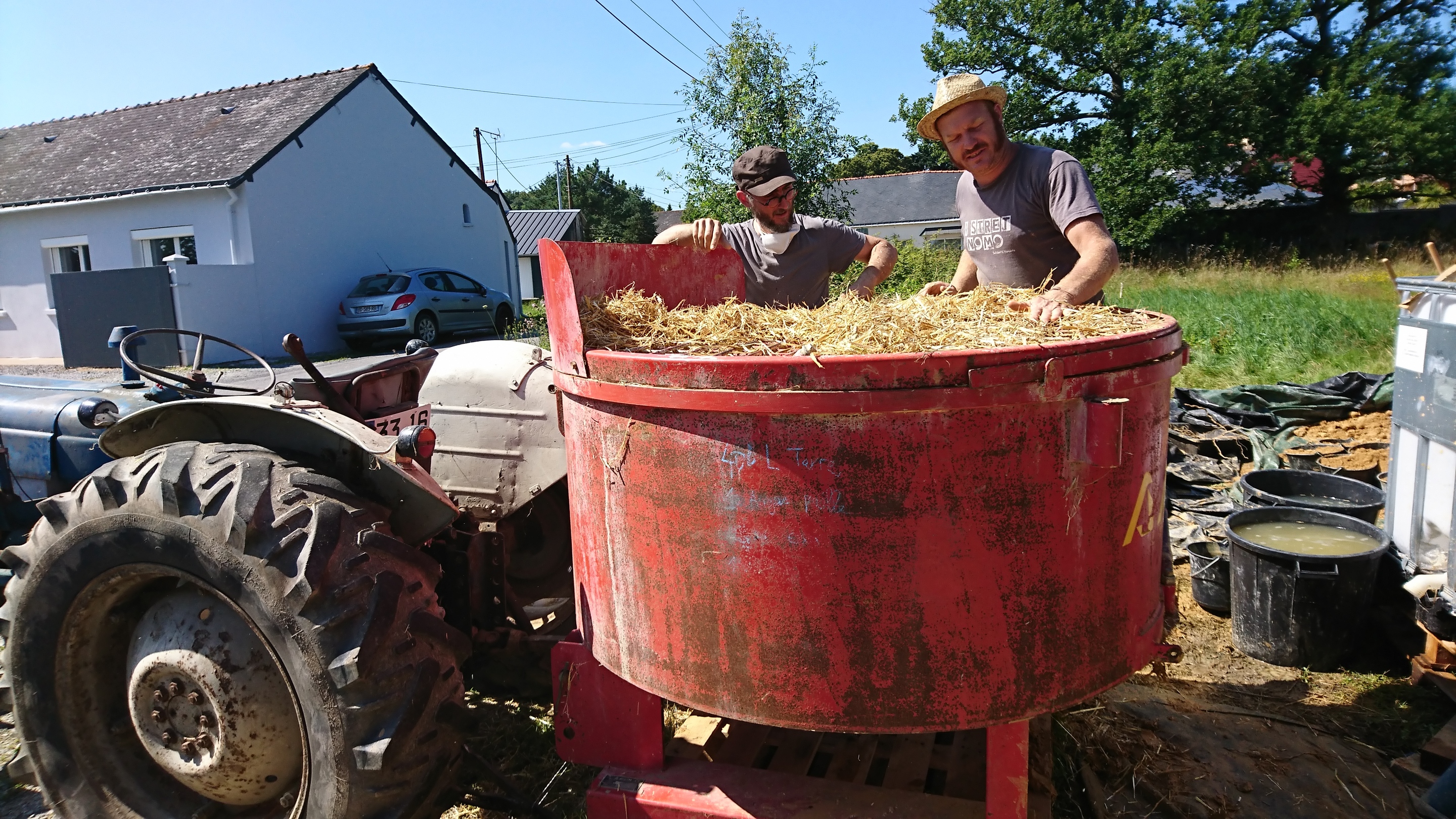 Malaxage de l'enduit terre paille