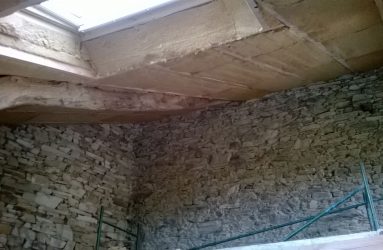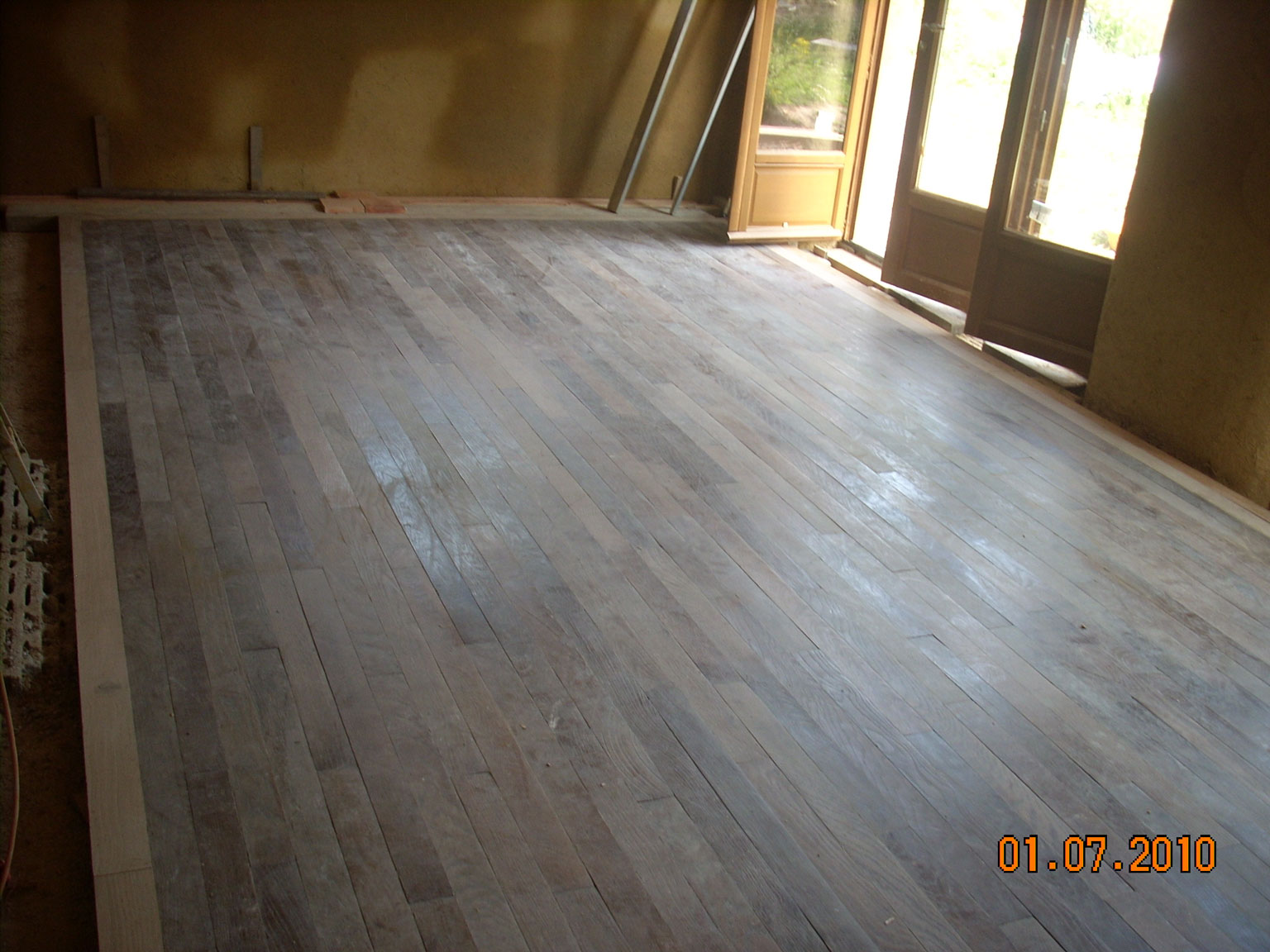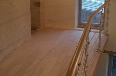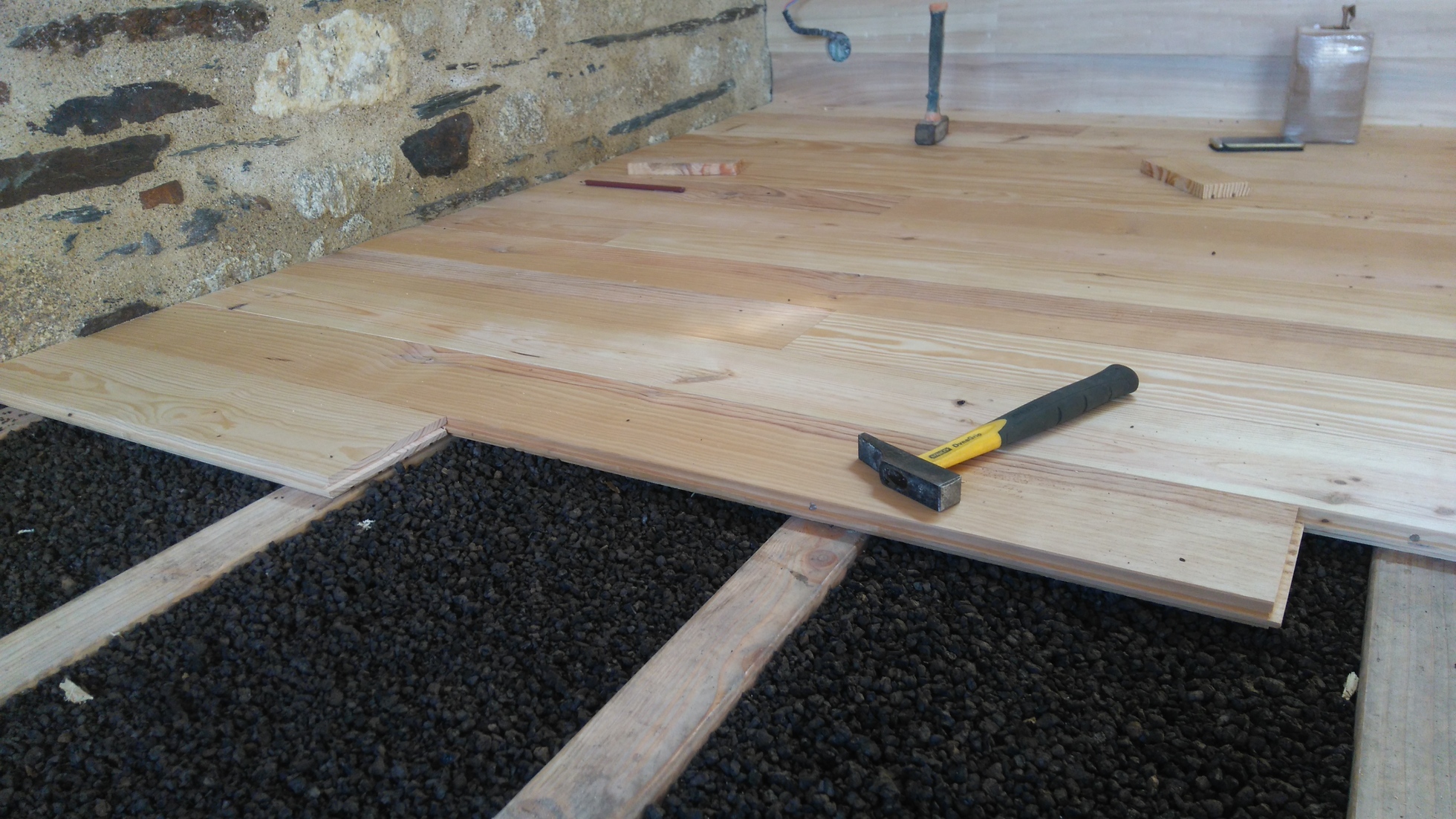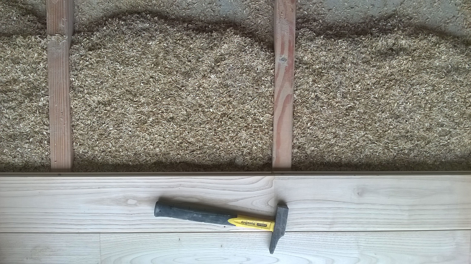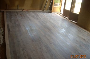 Plancher massif châtaigner isolation billes de liège